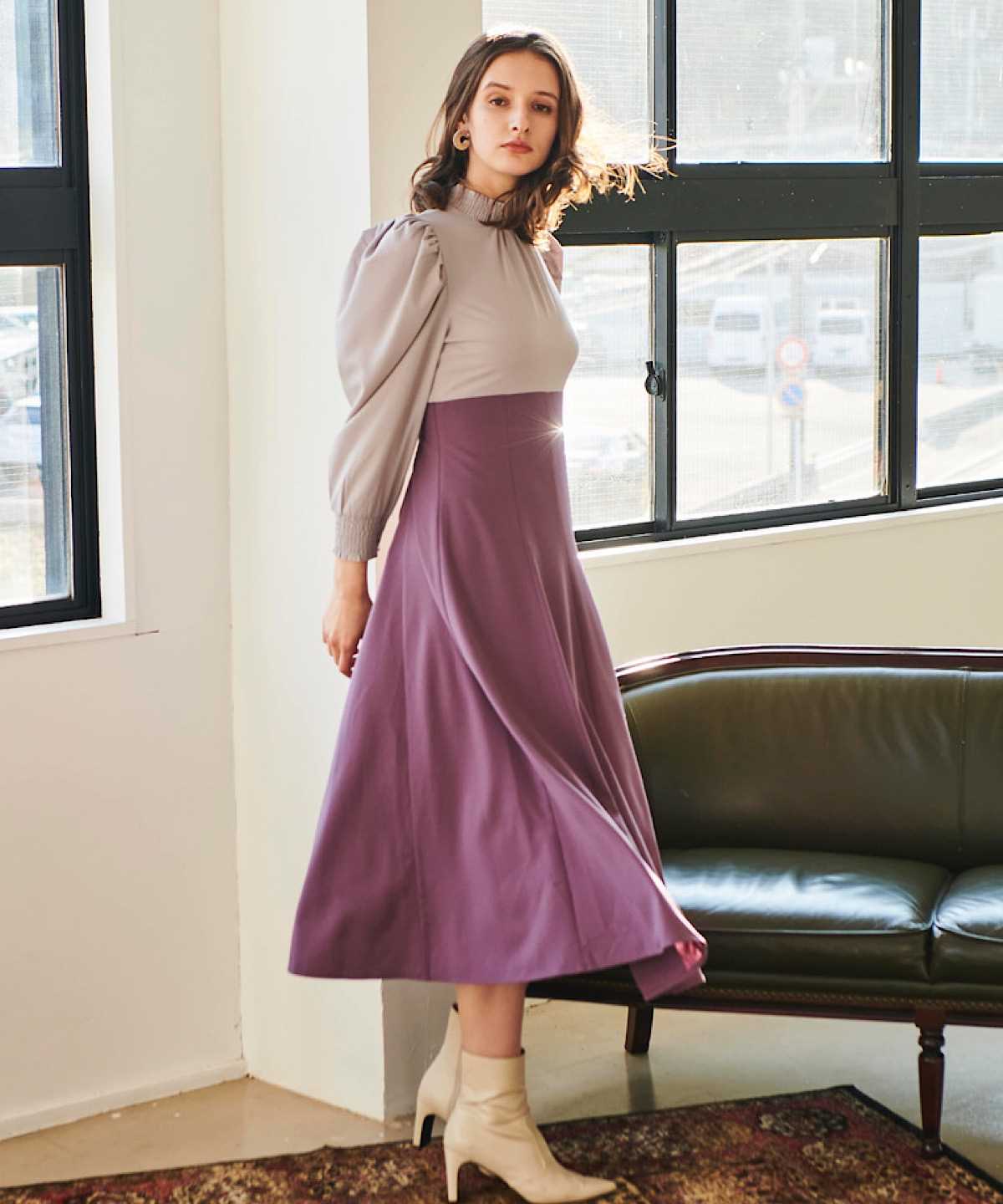 ボウタイ裾フリルワンピース e2986 レディース ワンピ 長袖 フレア レイヤード フェミニン 上品 大人 きれいめ おしゃれ デイリー オフィス ドッキング 着回し 秋冬 春 シンプル トレンド大人上品な印象のワンピースです。 カラーによっては、配色使いも♪ 衿元のボウタイデザインが、フェミニンな雰囲気を演出します。 シルエットは人気のAラインシルエット きれいなフレアラインが、女性らしさをアップさせると同時に、体型もカバーしてくれます。